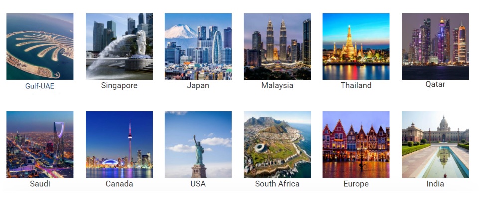 Dubai (UAE), Mumbai (India), Labuan (Malaysia), Fukuoka (Japan), Bangkok (Thailand), Singapore